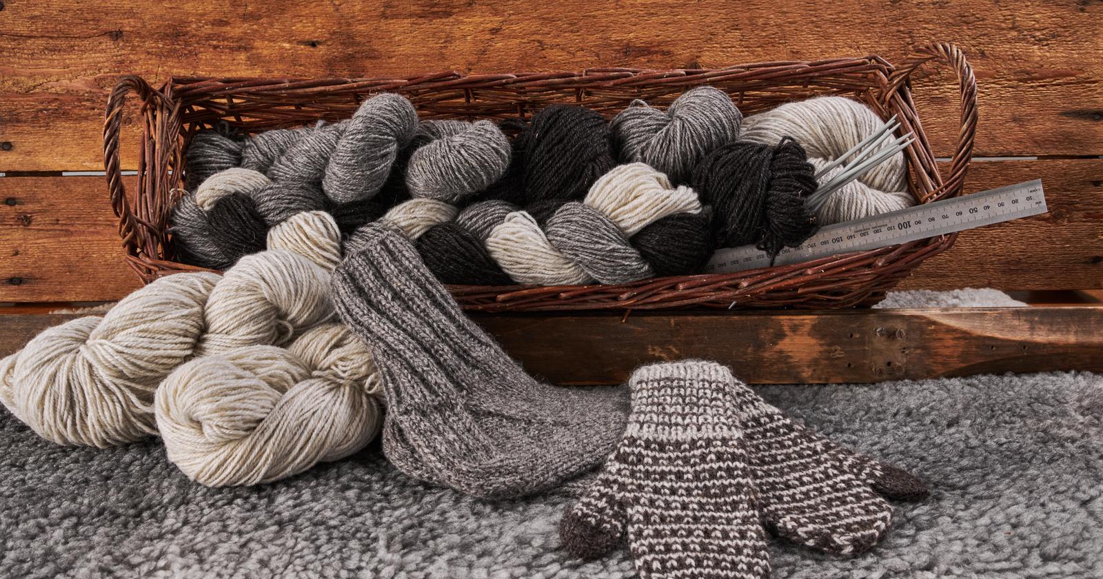 Vahvistettu kainuunharmas villalanka tilan omien luomulampaiden villasta.
